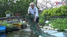 Cụ ông vác gạch làm ao nuôi cá, trồng rau trên sân thượng